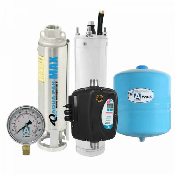 Sistema de bombeo sumergible de presión constante HidroControl serie MAX B-DRIVE con motobomba AquaPak serie MAX de 2HP 3F 230V 210LPM tanque de 18L (4.7GAL) con variador B-DRIVEWMT10/231