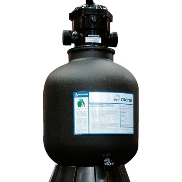 *Lider de calidad en filtros comerciales. *Filtro de fibra de vidrio bobinado. *Presión máxima de trabajo de 36 psi (2.5 bares). *Tapa pasa hombres superior para un fácil mantenimiento. *Purga de aire para mejorar filtración. *Colectores con finas aberturas para mantenner fuera la arena y la basura. *Menor Altura, mayor facilidad de instalación. *Conexiones de 8″.
