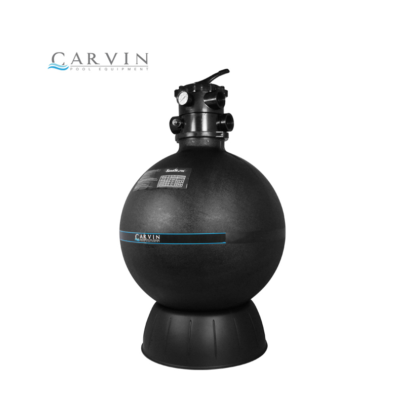 *Usa el 100% del área filtrante. *Tanque de diseño esférico para una fortaleza superior y mas larga vida. *Permite más tiempo de vida al material filtrante. *Más ahorro de agua y químicos. *Filtra partículas de hasta 3 micras, utilizando zeolita. Además. elimina las cloraminas. *La abrazadera de acero inoxidable, permite una rotación de la válvula de 360° para facilitar la instalación. *Válvula de 7 vías de 2″ para filtración, retrolavado, enjuague, drenaje, recirculación, invernar y prueba. *succion y descarga para conexiones doble NPT de 2″ (las uniones se venden por separado). *Colectores tipo “snap fit” para fácil servicio. *Base de uso rudo moldeada por inyección para un soporte sólido.