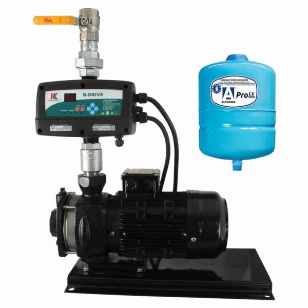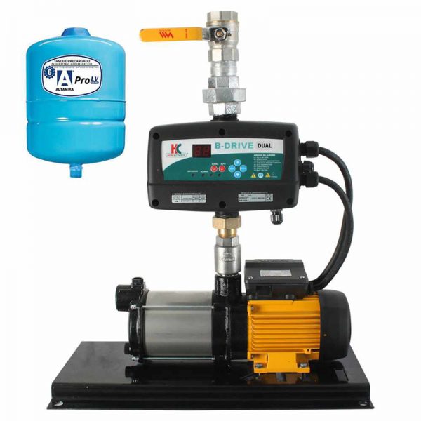 *Ideal para uso residencial y comercial. *Presión constante, velocidad variable, ahorro de energía eléctrica, arranque y paro suave. *Funcionamiento automático. *Compacto y fácil de instalar. *Incluye motobomba centrífuga multietapas horizontal marca ALTAMIRA serie SCALA. De excelente calidad. Eje, impulsores y tazones en acero inoxidable. Succión y descarga en hierro fundido. Motor cerrado enfriado por aire. Carcasa en aluminio. *Variador de frecuencia marca HIDROCONTROL serie B-DRIVE, el cual brinda las siguientes ventajas: -Presión constante. Ahorro de energía. -Alimentación voltaje monofásico (1x230V). -Creación de sistemas Dúplex considerando un variador B DRIVE en cada motobomba. *Protecciones como: -Alto y Bajo voltaje. -Sobrecarga. -Cortociruito. -Trabajo en seco. -Alta y Baja presión. *Tanque precargado de acero, para 150psi de presión máxima de trabajo.